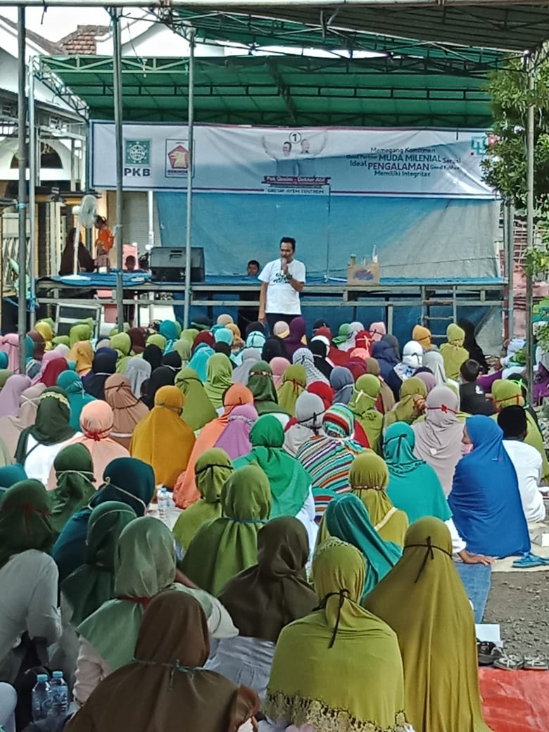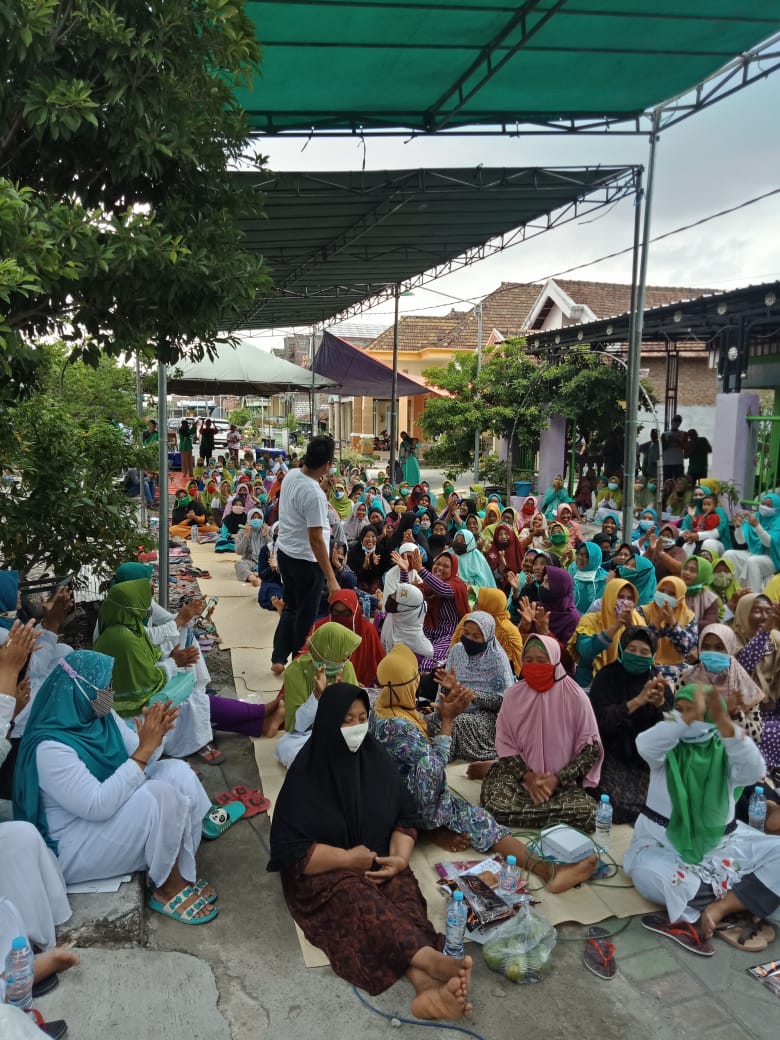 Kedatangan Cabup nomor 1 di ikuti warga fatayah muslimat. Selain Fatayah Relawan RGS Q-A kecamatan Benjeng juga tampak hadir mengawal paslon kebanggaanya.