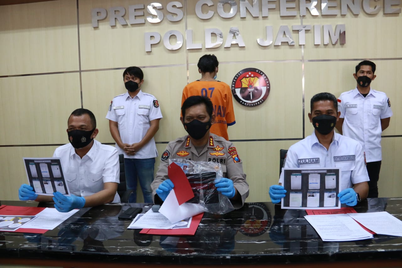 SIDOARJO (Suara Publik)- Unit IV Subdit V/Siber Ditreskrimsus Polda Jatim berhasil meringkus perkara prostitusi online anak dibawah umur, Selasa (26/01/2021). Polda Jatim berhasil menangkap AP (22), warga Kelurahan Tambakrejo, Kecamatan Waru, Kabupaten Sidoarjo di rumah, Kamis (21/01/2021). Dari tangan AP, polisi mengamankan barang bukti 1 (satu) unit handphone merk Xiomi Redmi milik AP dan mengamankan 1 (satu) unit merk ASUS. Kini, AP mendekam ditahanan Polda Jatim.