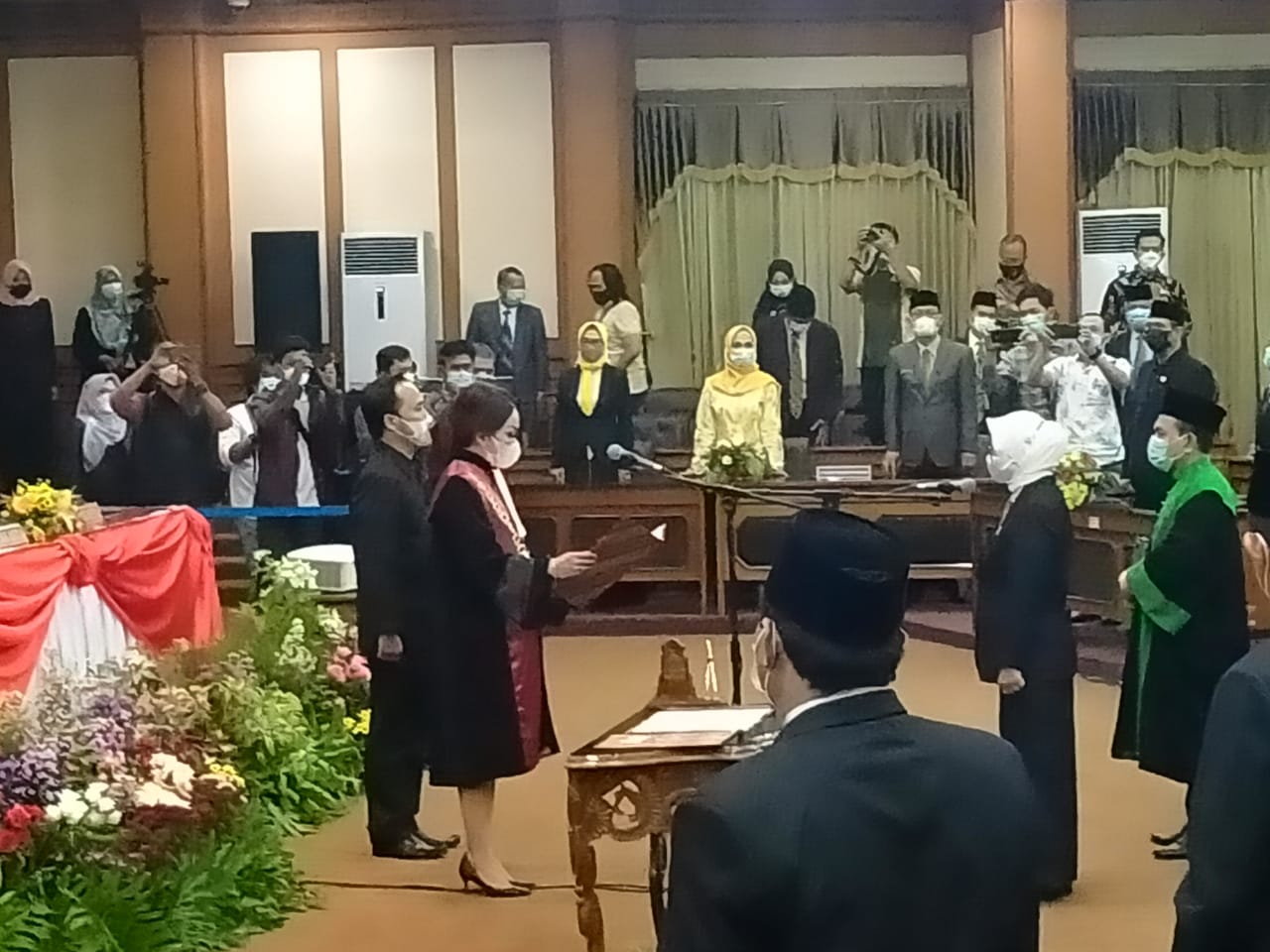 Acara dilanjutkan oleh Ahmad Nurhamim dengan agenda melantik PAW anggota dan pengambilan sumpah dilakukan oleh Ketua DPRD M.Abdul Qodir.