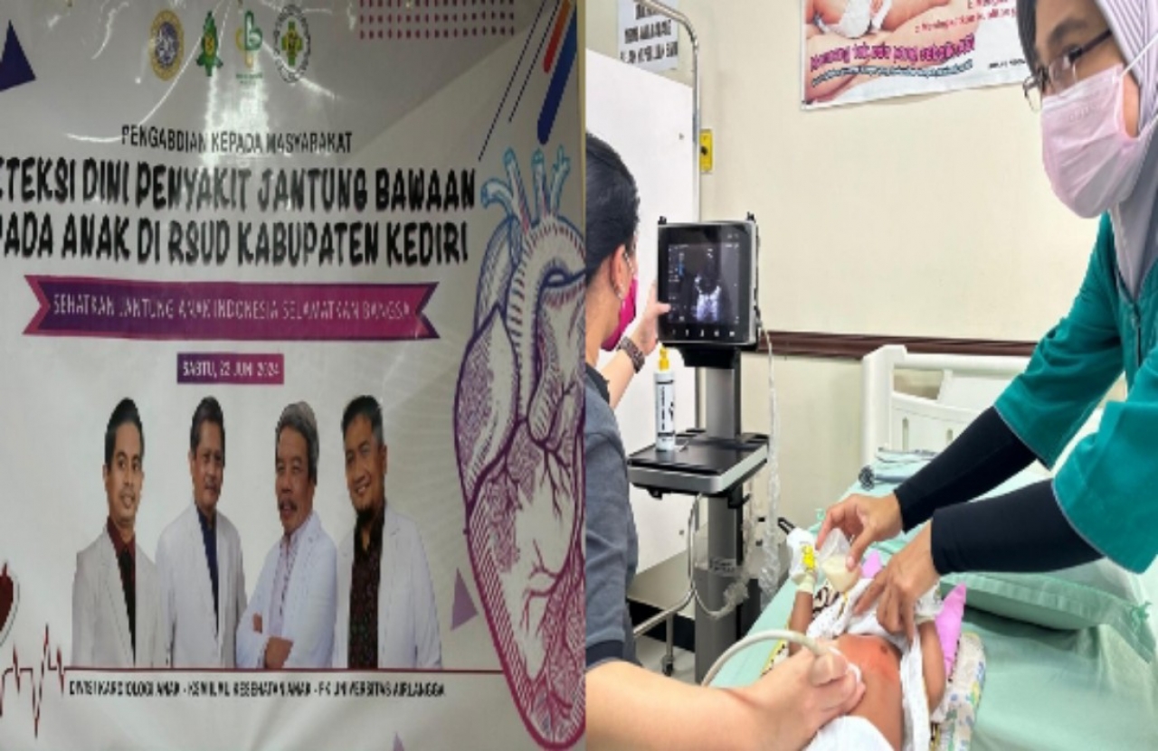 Guna mencegah angka kematian yang terjadi pada anak karena penyakit jantung bawaan (PJB), Divisi Kardio Anak RSUD Soetomo Fakultas Kedokteran Universitas Airlangga (Unair) bersama RSUD Kabupaten Kediri menggelar sosialisasi dan pelatihan deteksi dini penyakit jantung bawaan pada anak, Sabtu, (22/06/2024) lalu. Kegiatan sosial yang bersifat pengabdian kepada masyarakat ini patut diapresiasi.