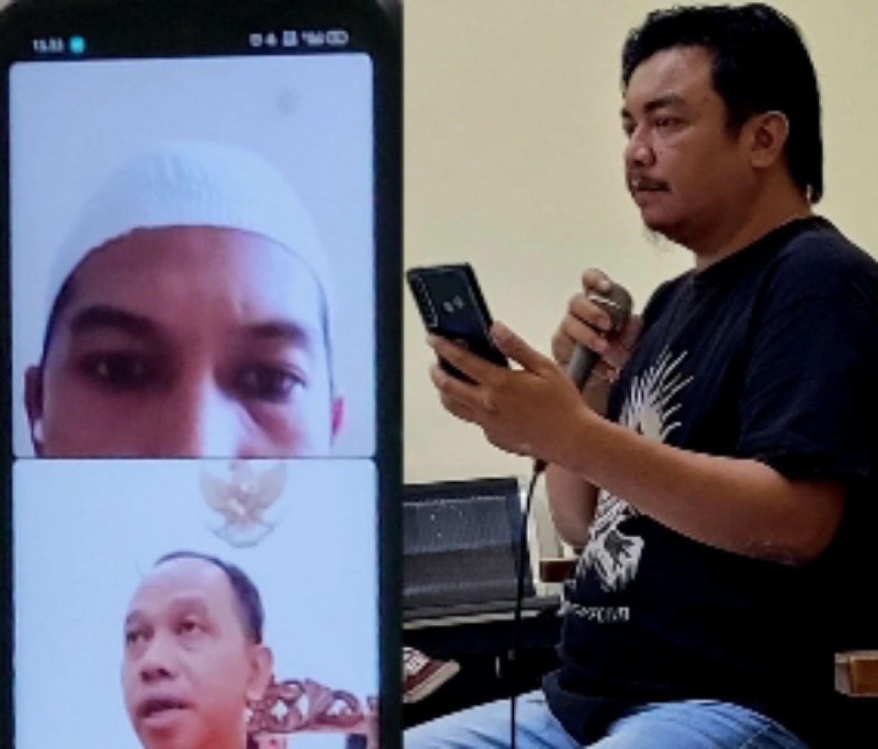 Foto: Terdakwa Mukhamad Afan (kiri) dan Saksi Penangkap, Achmad Yani dari Polsek Krembangan (kanan), saat persidangan di PN Surabaya, secara vidio call, Selasa, (15/10/2024)