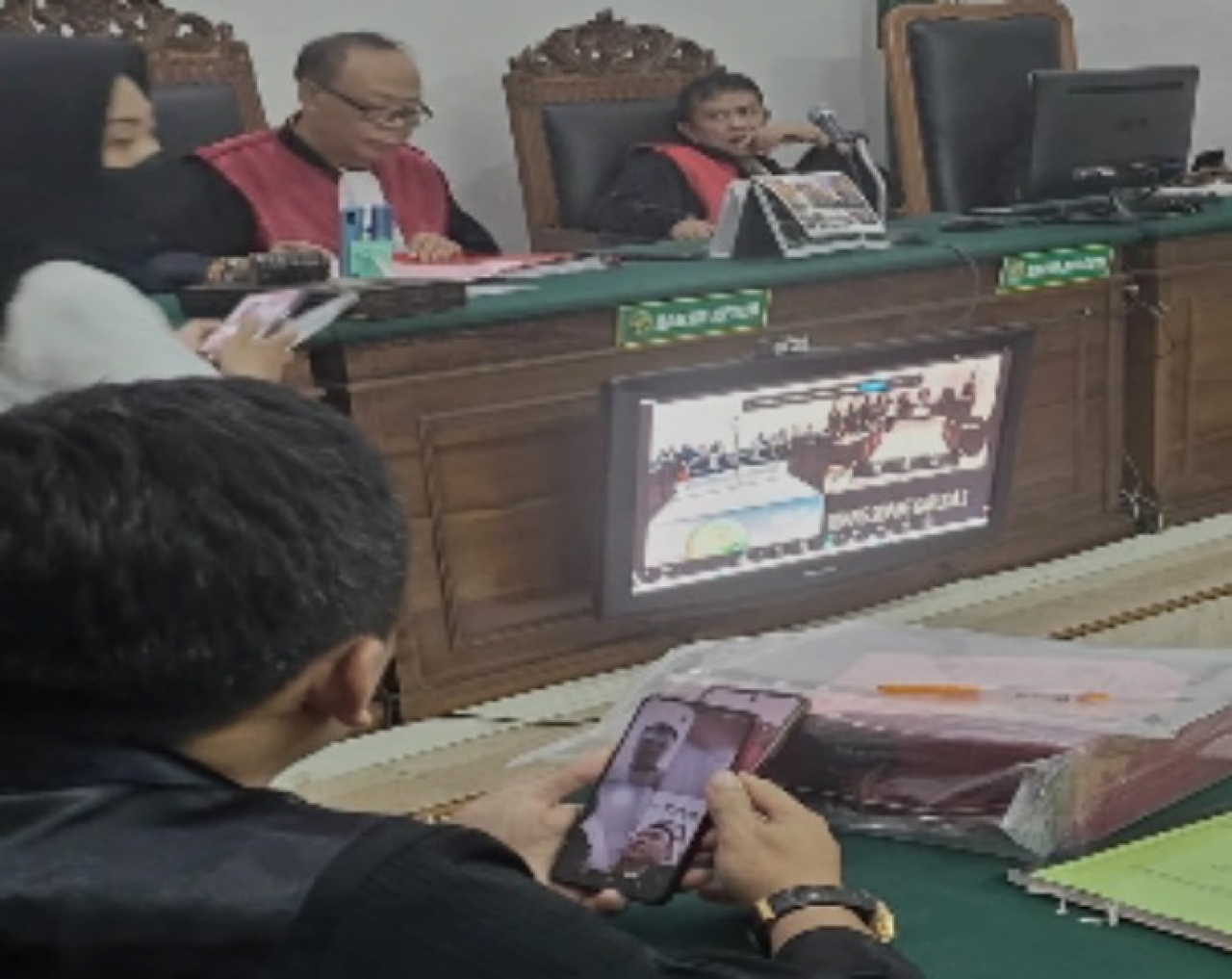 Dengan terdakwa Evan Andriavano Lalensang anak dari Gorge Daniel, yang diadili di Ruang Garuda 2 Pengadilan Negeri (PN) Surabaya, secara vidio call.