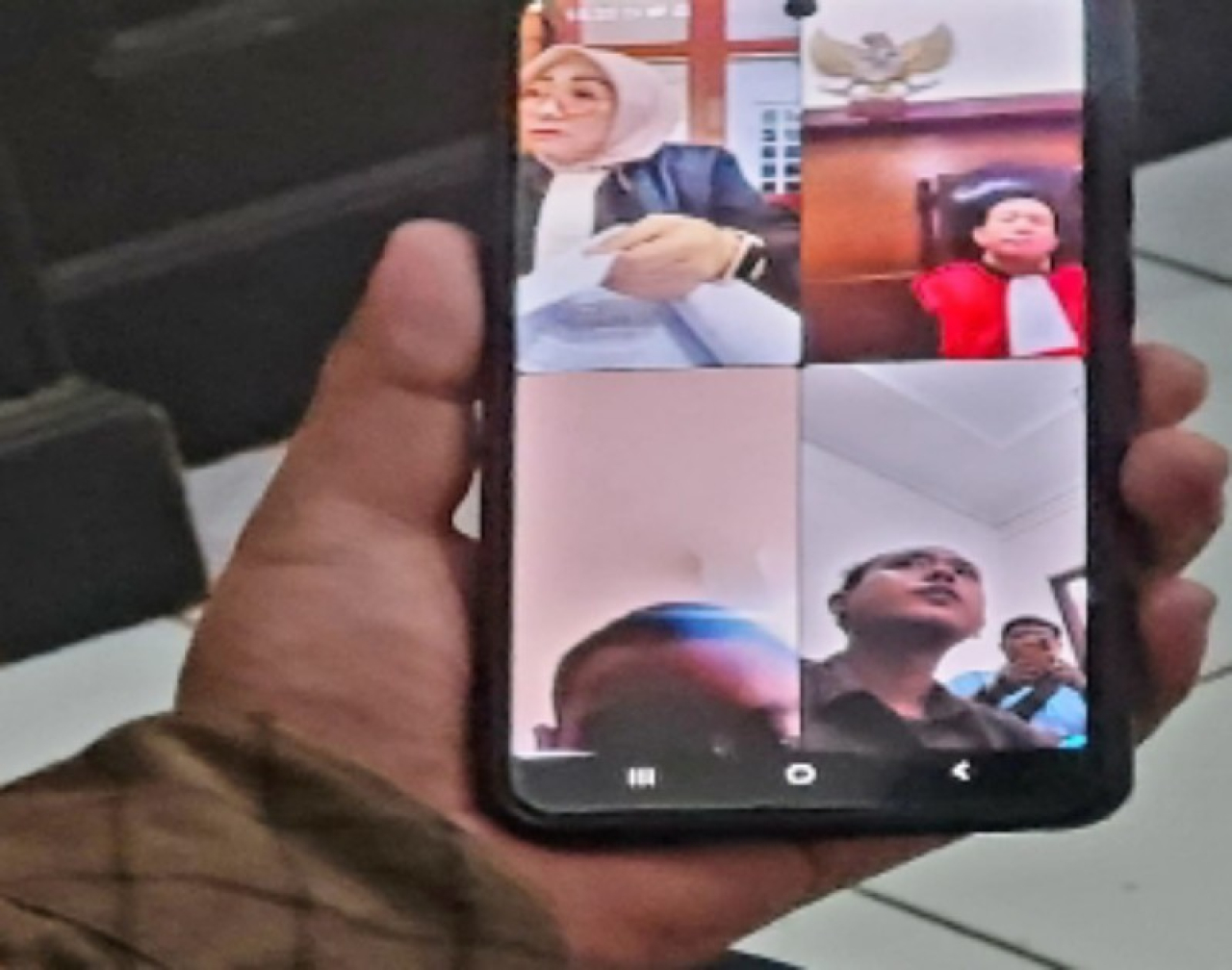 Terdakwa Yuda Oktavian bin Sumarsono diadili di Ruang Kartika 2 Pengadilan Negeri (PN) Surabaya, secara vidio call.