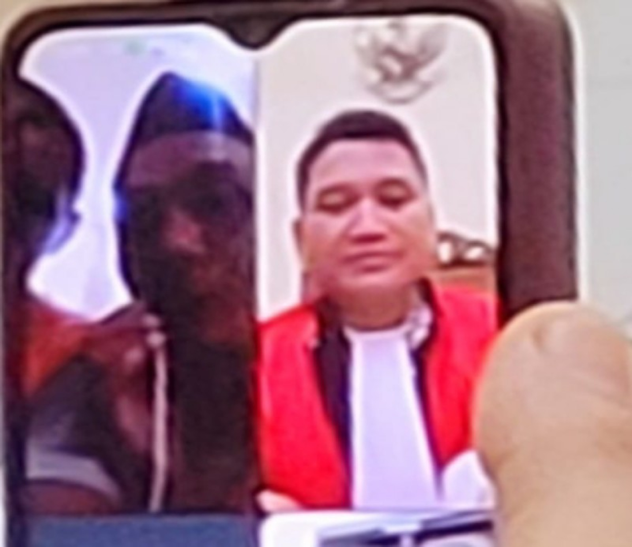 Foto: Para terdakwa Siswanto dan Jarokhim, menjalani sidang agenda saksi penangkap di PN Surabaya secara vidio call, Rabu (22/01/2025)