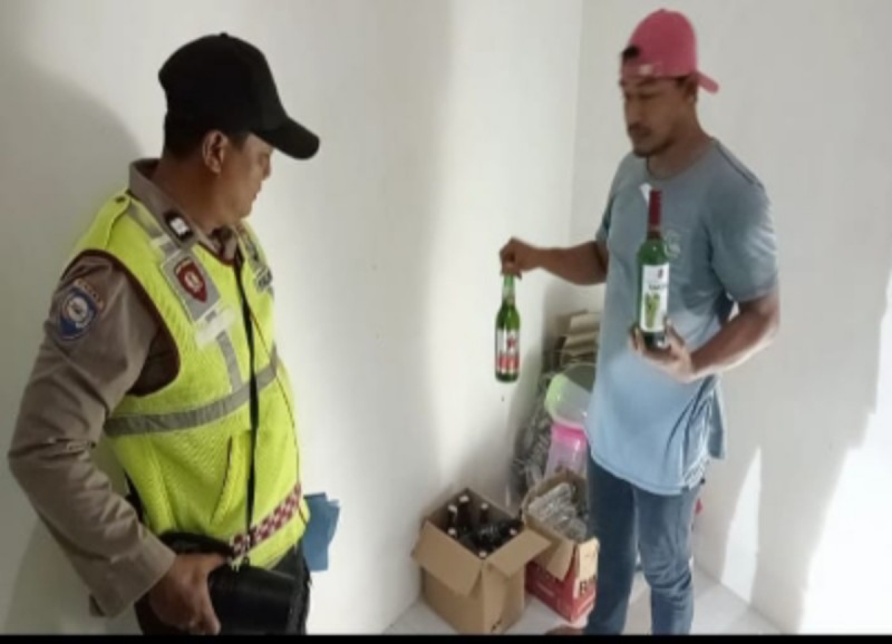 Barang bukti yang diamankan meliputi Arak kecil 8 botol, Arak besar 5 botol, Guinness 6 botol, Anggur Hijau Kawa-Kawa 6 botol, Bir Bintang 10 botol, Api 5 botol, Anggur Merah 4 botol