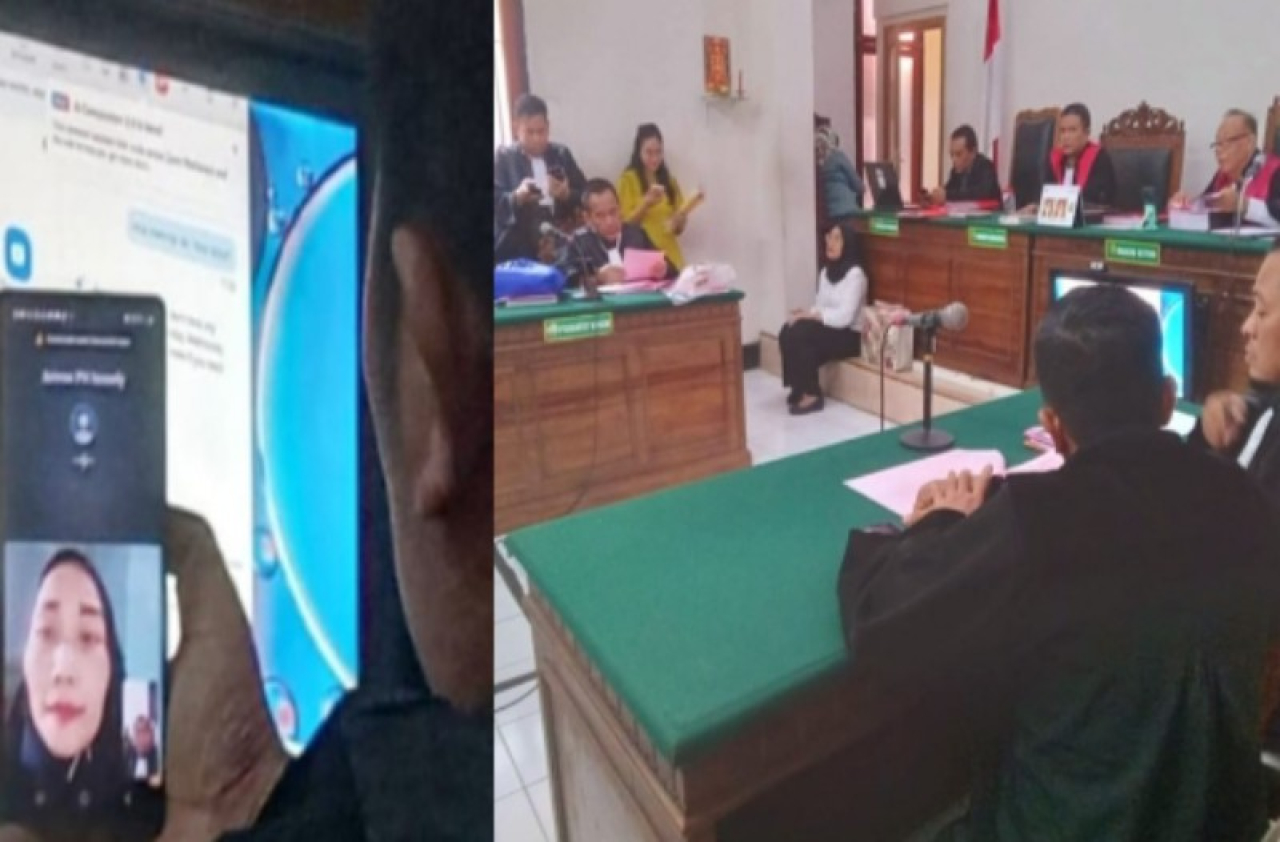 Warga Jemur Andayani 7/17, Kelurahan Jemur Wonosari, Kecamatan Wonocolo, Surabaya diadili di Ruangan Garuda 2 PN Surabaya, dengan dipimpin Ketua Majelis Hakim Khadwanto secara vidio call.