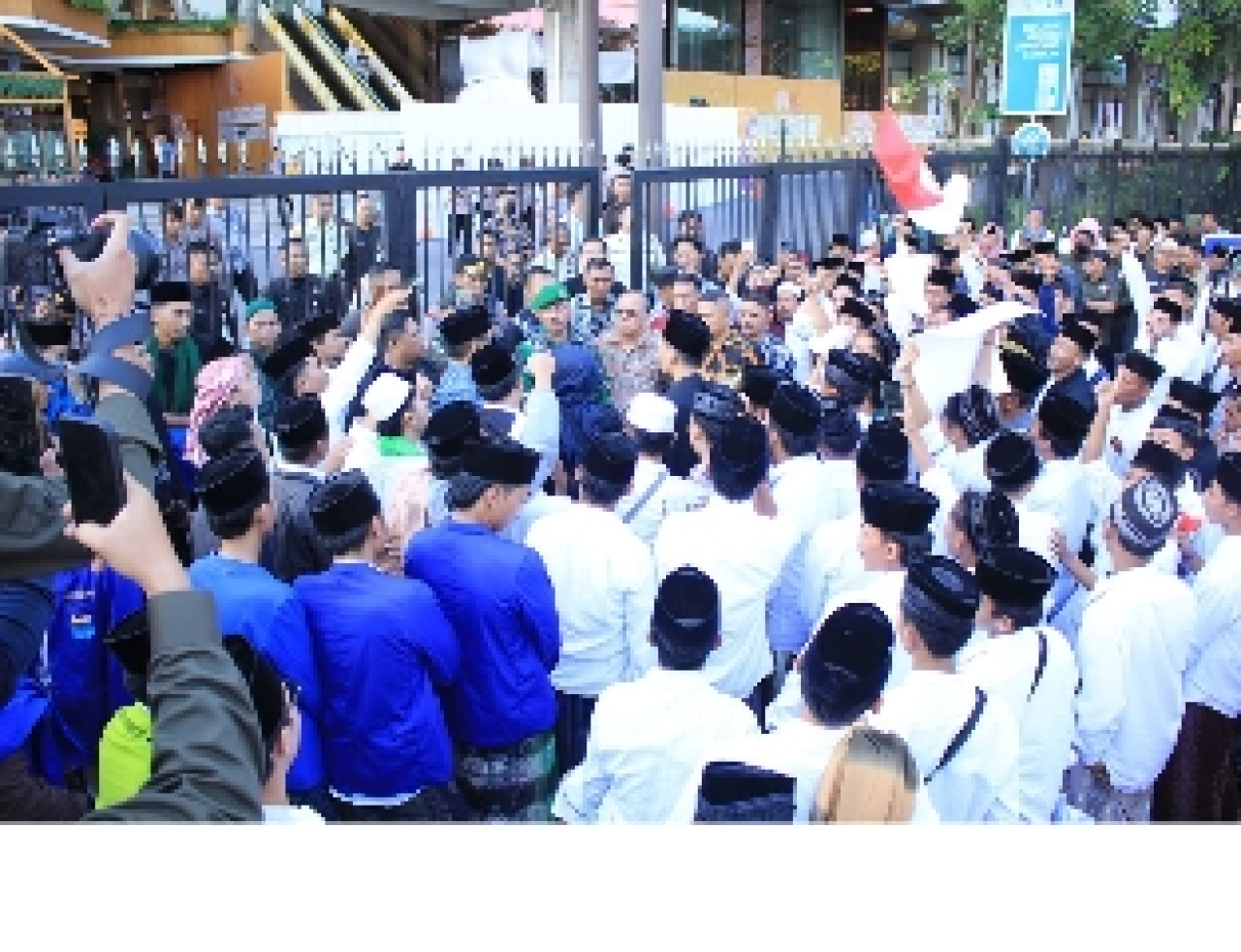 Koordinator aksi Himpunan Alumni Santri dan Simpatisan Pondok pesantren Miftahul Ulum Lepelle Kecamatan Robatal Kabupaten Sampang, Mat Jusi, sembari memimpin massa aksi hingga bersuara depan gerbang pintu Trans Icon Mall yang ditemui kepala keamanan dan menuai ketidakpuasan, menyuarakan tuntutan dengan pengeras suara. Suaranya lantang, tegas, dan menggugah.