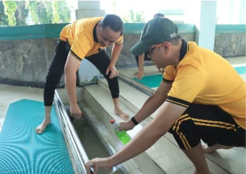 Arahan tersebut disambut antusias oleh anggota yang langsung bergerak sesuai ploting tugas masing-masing. Suasana kebersamaan tampak jelas saat personel bahu-membahu menyapu halaman, mengepel lantai, membersihkan kaca, hingga merapikan fasilitas umum demi memastikan lingkungan tempat ibadah tetap terjaga kebersihannya.