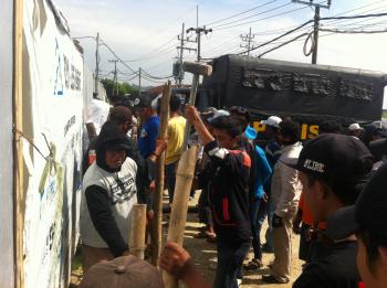 Surabaya Suara-Publik. Massa dari ahli waris keluarga Kaskan, kembali mendatangi proyek gudang di kawasan Benowo Surabaya. Massa yang berjumlah puluhan ini, kembali melakukan aksi pemasangan patok, tepat didepat pintu masuk proyek pergudangan PT. Bumi Benowo Sukses Sejahtera.
