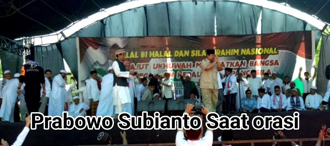Sementara itu, ketika tiba giliran Ketua Umum Partai Gerindera, Prabowo Subianto,menyapa jamaah halal bihalal luar biasa. Tokoh Nasional ini mengatakan bahwa ummat islam harus bersatu, buang jauh –jauh perbedaan, tingkatkan etika ahlak dalam menjaga kedaulatan Pancasila dan NKRI juga Bhinneka Tunggal Ika.