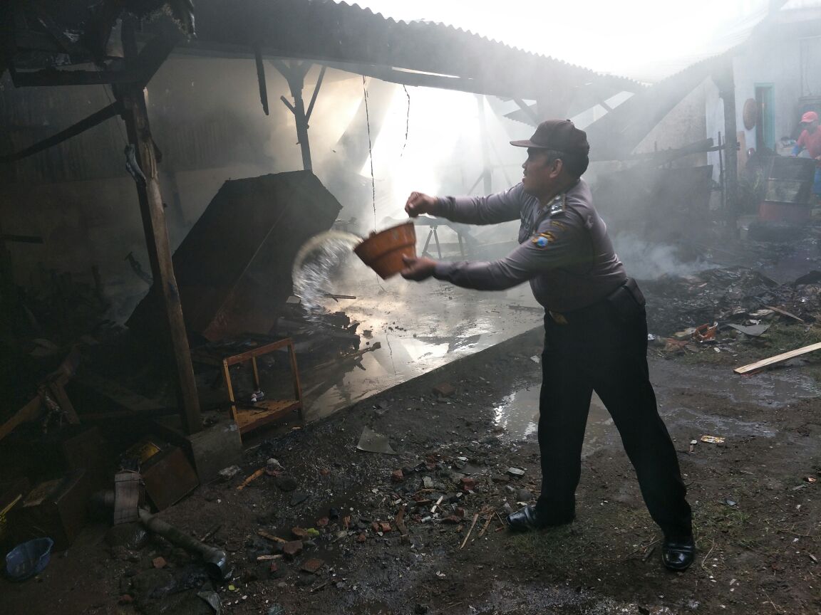 Tak hanya warga yang berjibaku memadamkan api. Petugas kepolisian yang datang ke TKP pun turut memadamkan api. Petugas kepolisian saat itu dipimpin langsung Kapolsek.