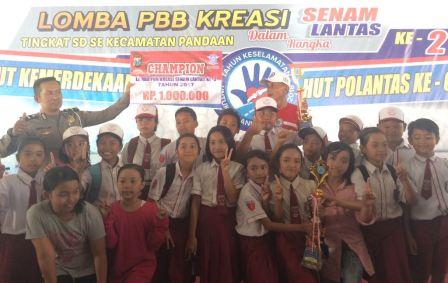 Pasuruan, Suara-Publik. Dalam rangka memperingati HUT Proklamasi Kemerdekaan RI ke -72 Polantas Polsek Pandaan bekerjasama dengan Sat Lantas Polres Pasuruan menggelar lomba PBB Kreasi Senam Lalu Lintas Tingkat SD se-kecamatan Pandaan dengan tujuan menjadikan generasi muda yang cerdas dan tertib berlalu lintas, Sabtu (26/08/2017).