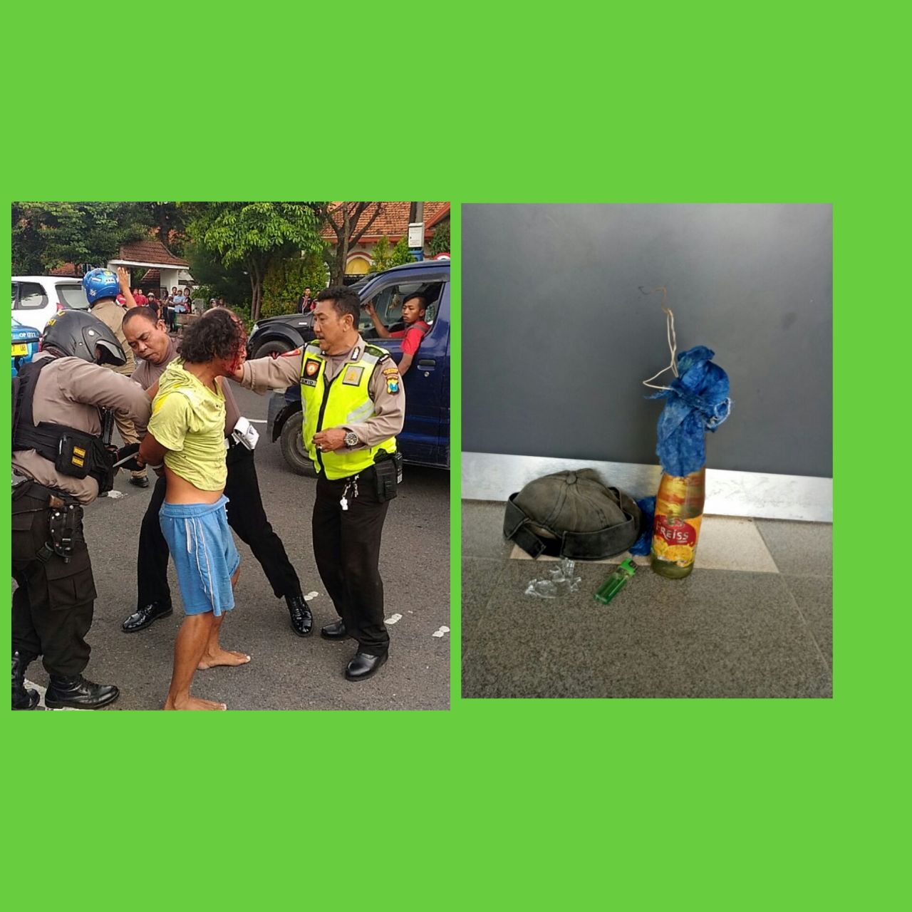 SURABAYA Suara Publik. Gedung Negara Grahadi, Jalan Gubernur Suryo, Surabaya, Sabtu siang (6/1) sekitar pukul 11.00 WIB, mendadak gempar. Pasalnya, seorang pria tak dikenal membawa 2 botol bersumbu yang berisi bensin diduga bom molotov.