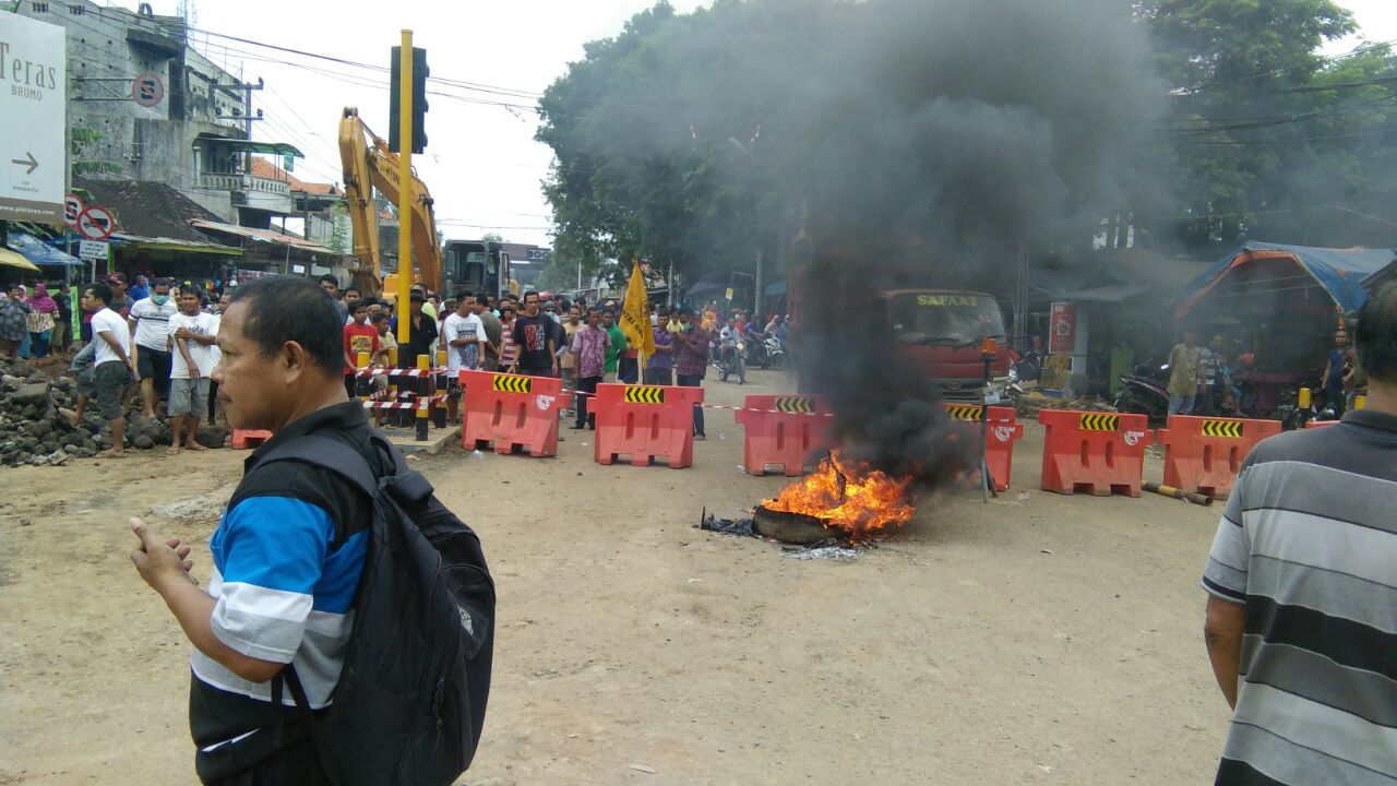 Kompensasi Tak Layak, Warga Warungdowo Bakar Ban Bekas.