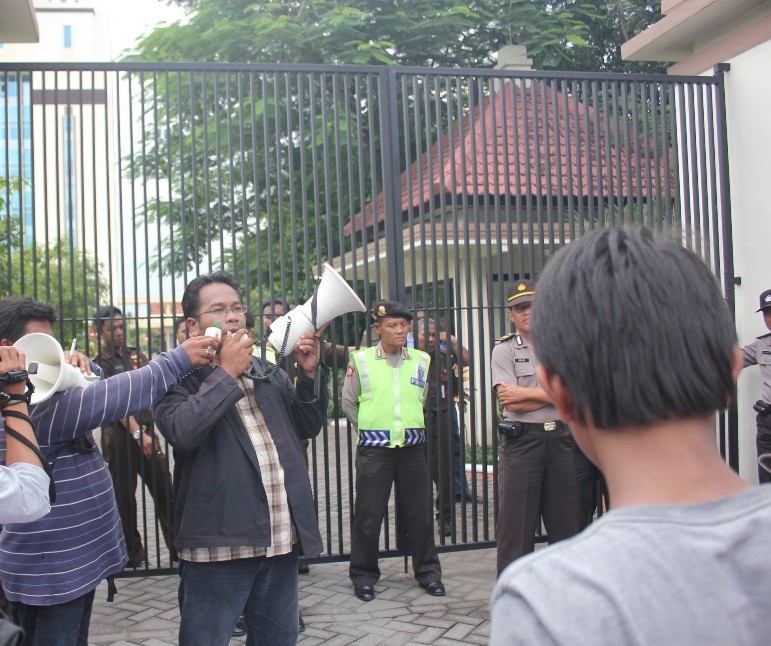 “kami meminta agar aparat hokum kejaksaan secara serius memproses kasus pengadaan mobil dinas yang kini dipakai oleh Polrestabes Surabaya, sekaligus kami juga melaporkan pemkot Surabaya soal penggunaan anggaran untuk pengadaan jaringan internet RT/RW yang dilaksanakan PT Telkom sebagai pemenang tender, yang ternyata anggarannya ganda dan sarat dugaan KKN” ucap Ismet salah satu anggota aksi saat ditemui media ini. (17/1/12)