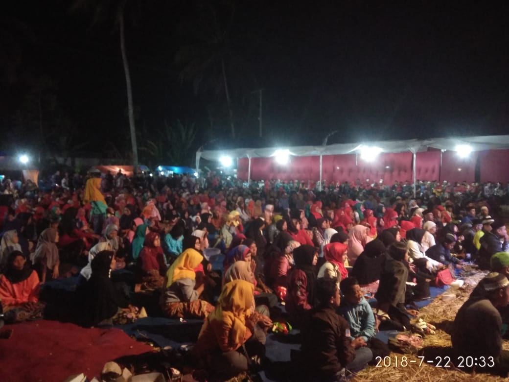 BONDOWOSO, Suara-publik.com - Ribuan Relawan Sabar hadiri acara istighotsah dan pesta kembang api di desa Patemun Kecamatan Tlogosari, Minggu malam, (22/7/2018).