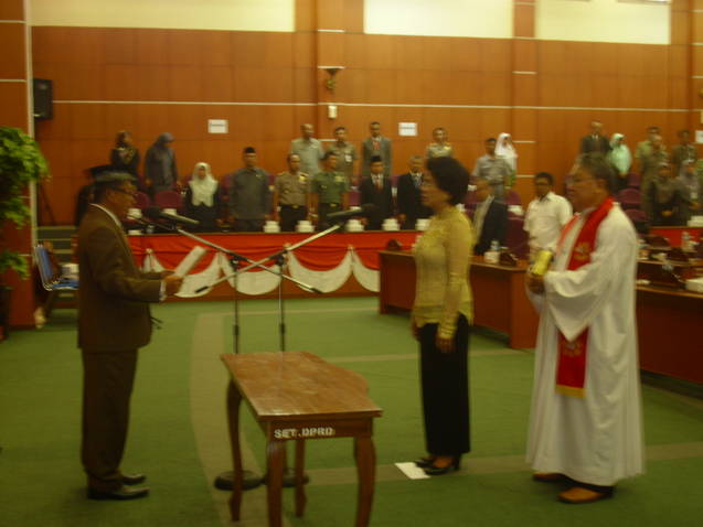 Pergantian  sumpah langsung dipimpin ketua DPRD Depok, dan pendeta  dari pihak Gereja yang bersangkutan, yang disaksikan oleh ketua dan  pengurus PDS kota Depok.