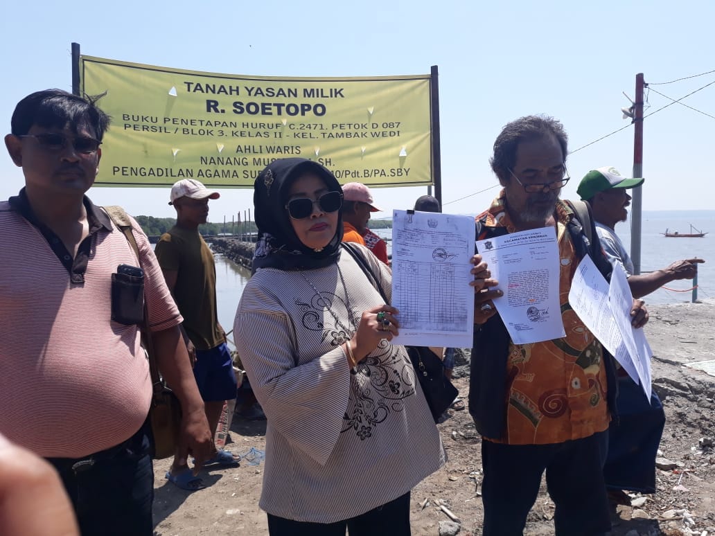 Puluhan warga yang menjadi masa pendukung keluarga Wasinik Sendang Ngawiti ini datang ke lahan tanah yang terletak di Kelurahan Tambak Wedi, Surabaya untuk memasang spanduk yang menegaskan jika tanah tersebut adalah milik HR Mustofa Sutopo SH yang di wariskan kepada istri dan putranya. " Triyono Harjono ketua LSM Lingkar Data dan juga selaku kuasa hukum ahli waris mengatakan pihaknya memasang spanduk tersebut setelah data-data yang dikumpulkan bahwa Warsini dan putranya adalah ahli waris yang sah.