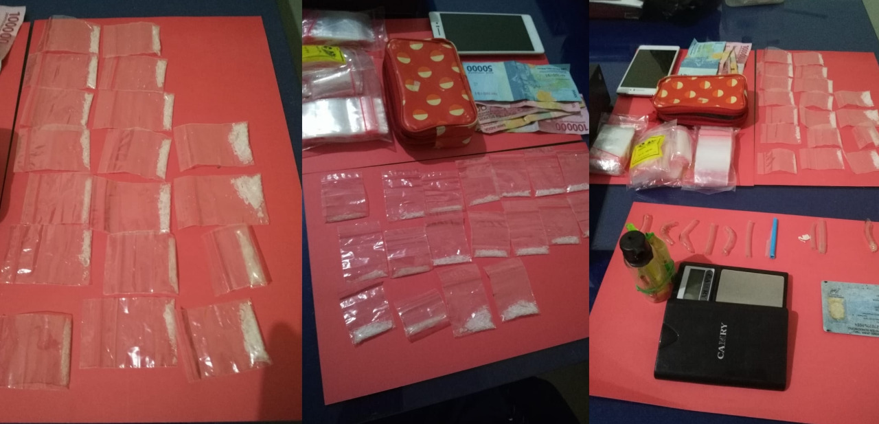 Selain BB shabu, anggota juga mengamankan barang bukti berupa seperangkat alat hisap sabu/bong, 3 bendel klip plastik kecil, 9 pipet bekas, 1 Timbangan kecil merk Camry, 1 buah hp merk oppo warna putih Tipe R8106, 1 Slorokan lemari divariasi kotak kecil warna putih diduga tempat untuk menyembunyikan paketan sabu, dan uang tunai Rp.450.000,-.