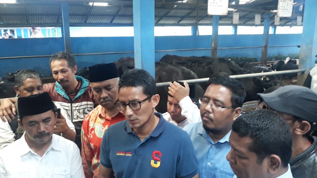 Sandi yang mengunjungi bagian pelayanan kesehatan hewan dan inseminasi buatan KSP (koperasi susu perah) Setia Kawan Nongkojajar Kabupaten Pasuruan disambut puluhan pendukungnya dan Anwar Sadad selaku sekretaris DPD partai Gerindra Jawa Timur serta Dedi Sumanto wakil ketua DPRD kabupaten Pasuruan dan Juriyanto anggota DPRD dari Fraksi Gerindra.