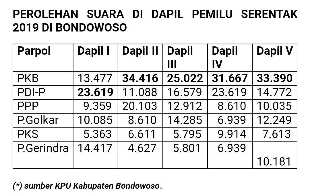Di Dapil I (Kecamatan Bondowoso, Tenggarang, Wonosari) suara dikuasai PDI-P diikuti PKB di urutan kedua. (selengkapnya lihat grafis, red).