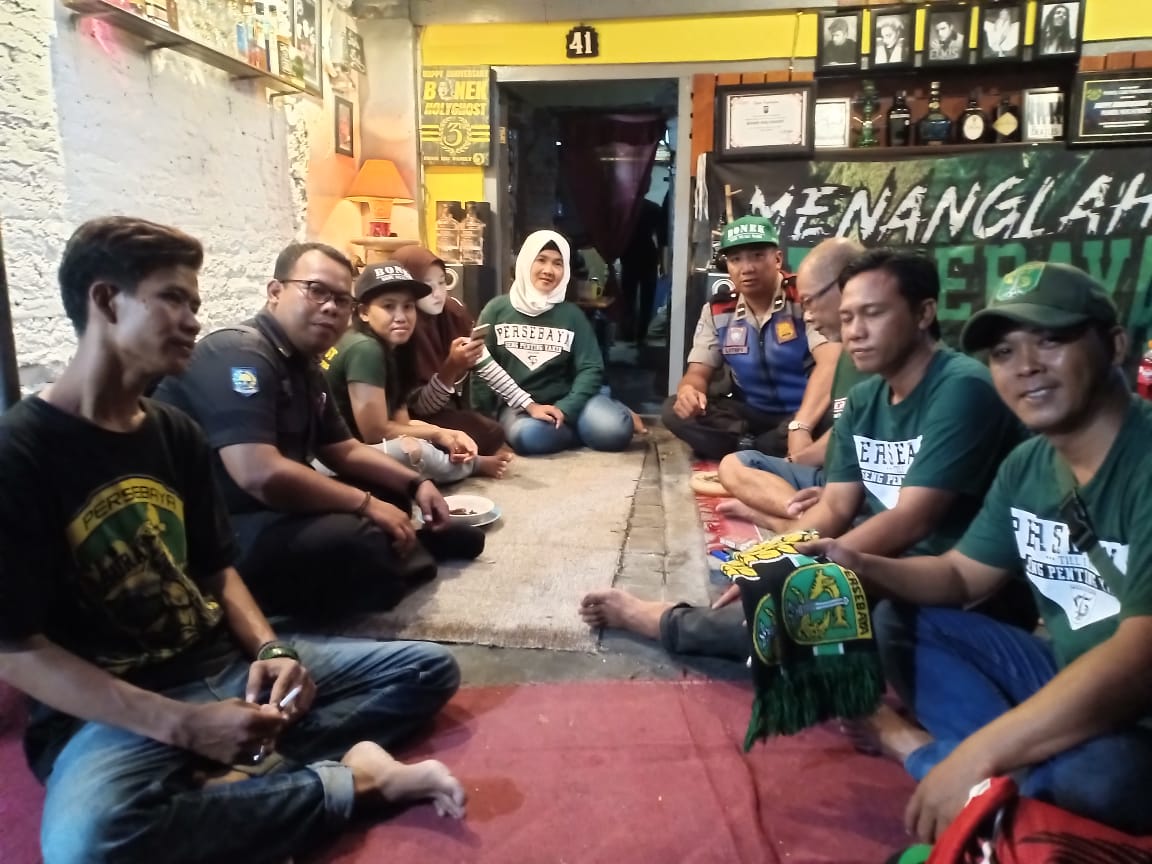 Polsek Sawahan dalam melaksanakan giat Nobar sepak bola Liga 1 Shoppe antara Arema vs Persebaya bertempat di Bascamp Bonek Holygost Kupang Krajan Tengah Surabaya situasi berjalan mandali.